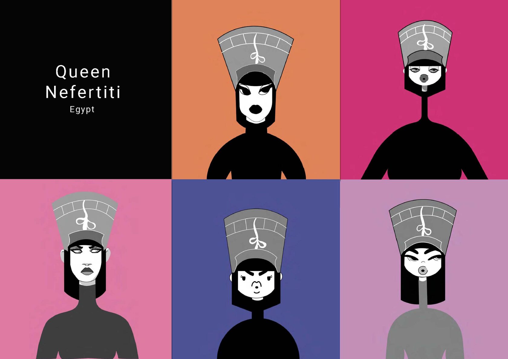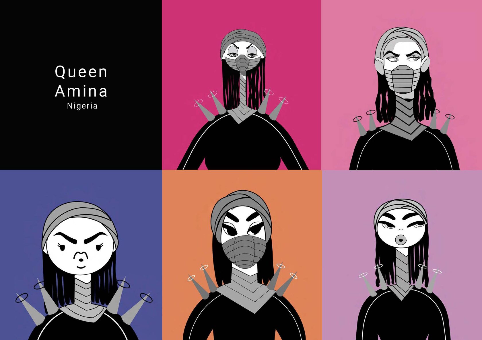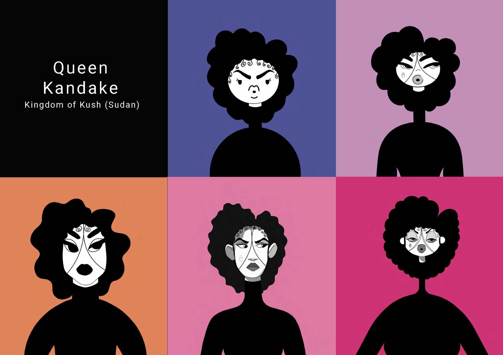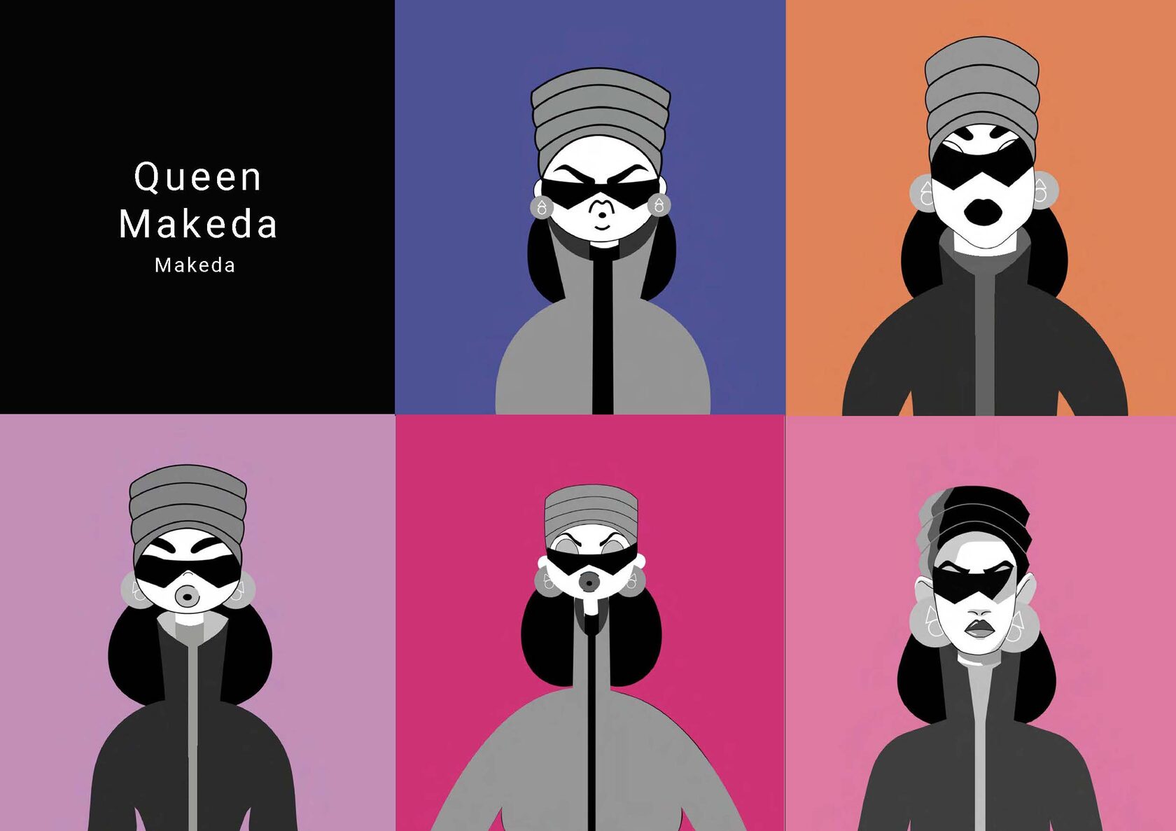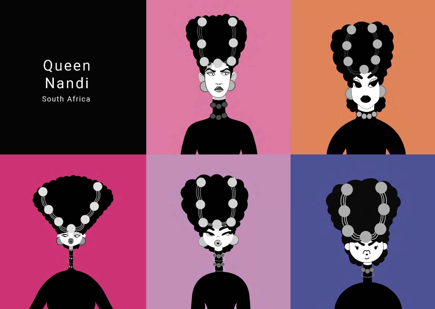 Afro futuristic character inspired from rock art paintings and the Batswana culture. African Queen inspired illustration collection.